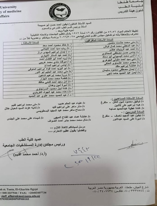 * تشكيل مجلس القسم لعام الجامعى 2026 - 2025