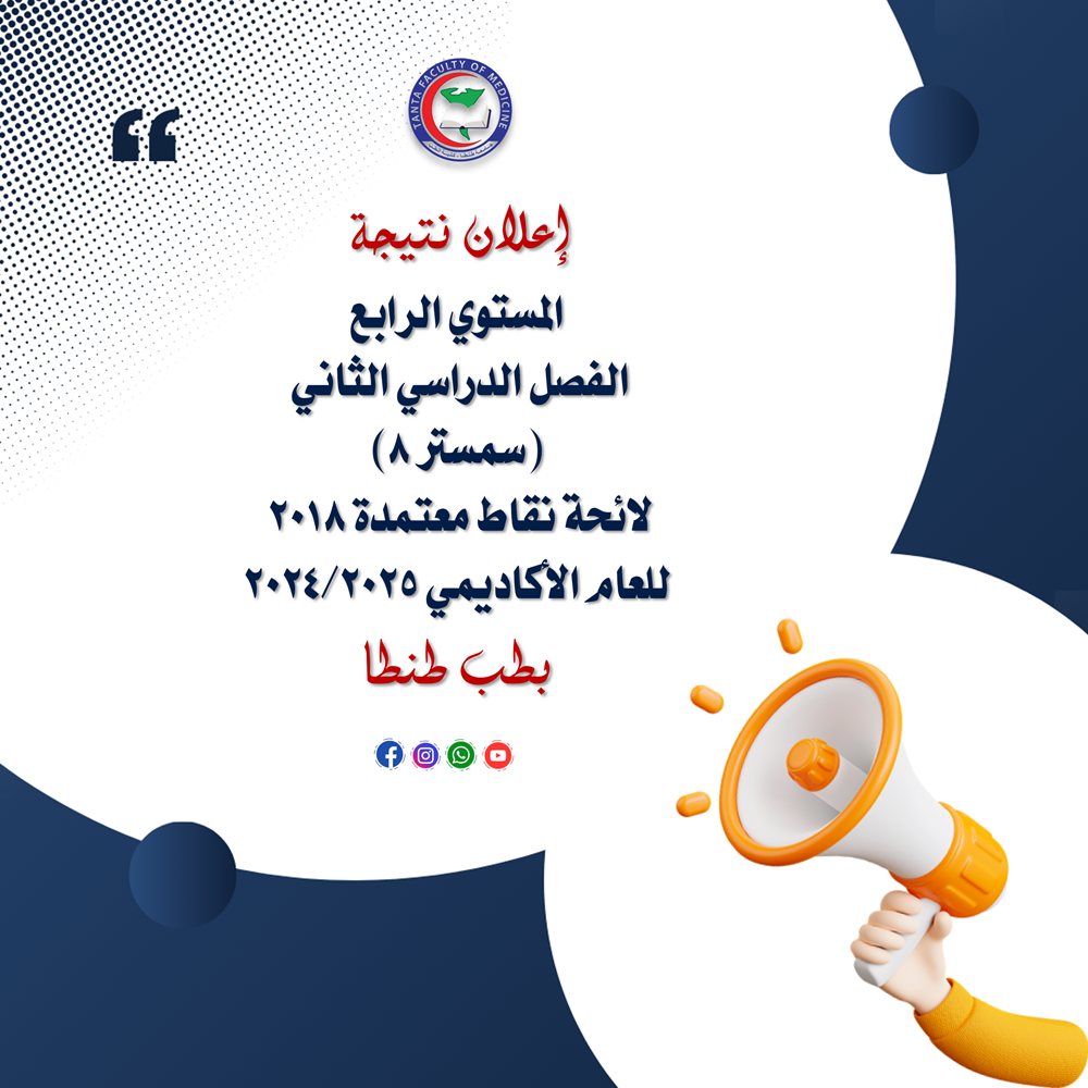 تعلن كلية الطب جامعة طنطا نتيجة المستوي الرابع الفصل الدراسي الثاني (سمستر 8) لائحة نقاط معتمدة 2018