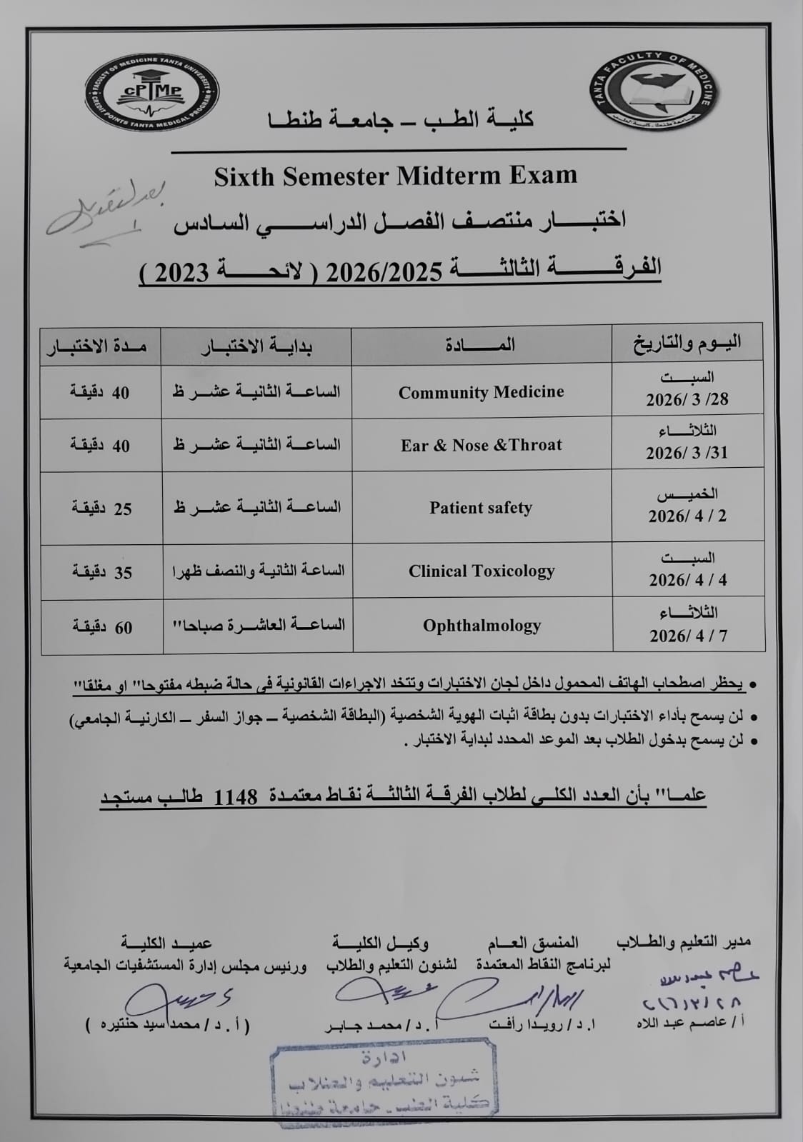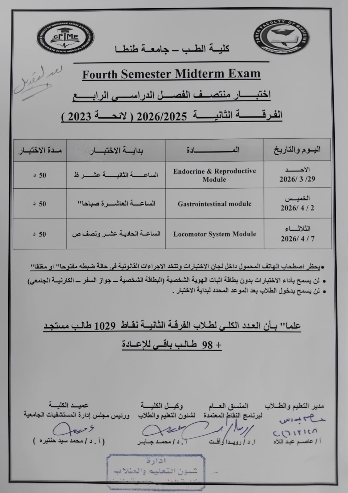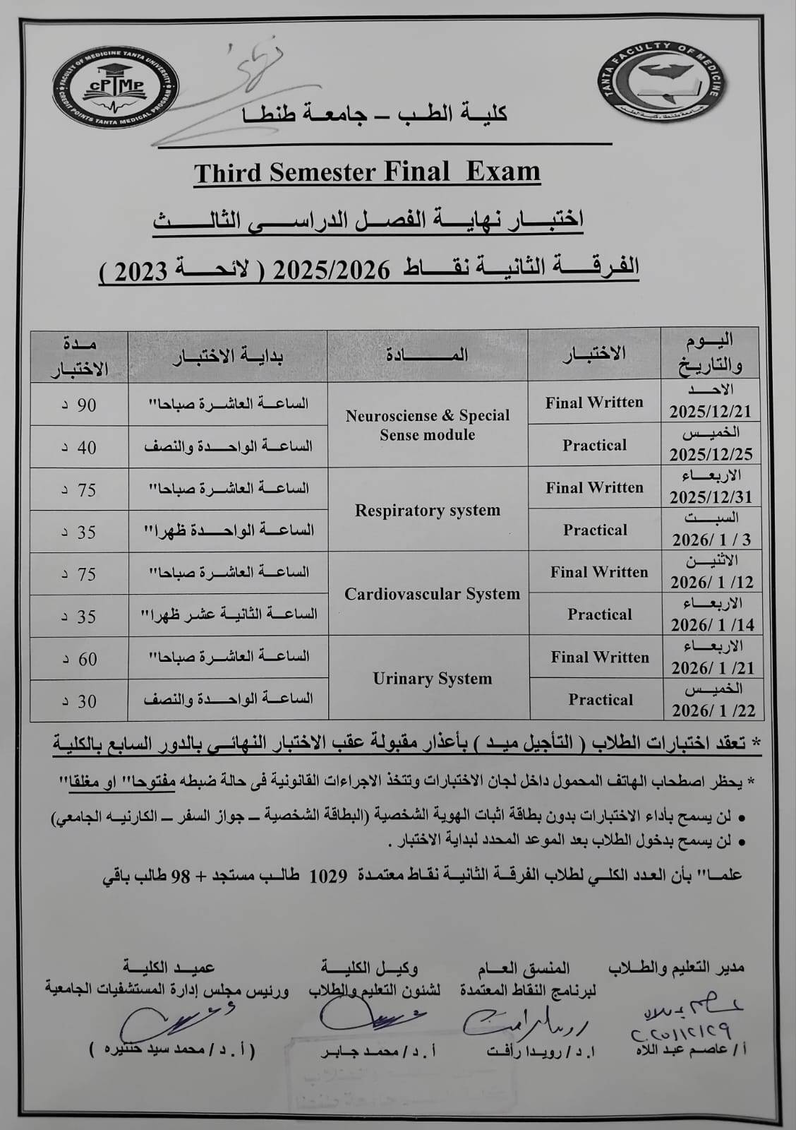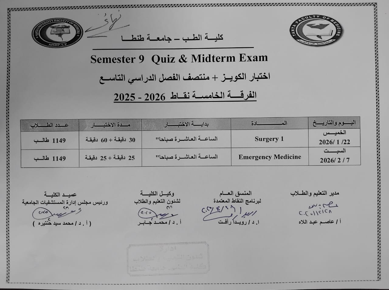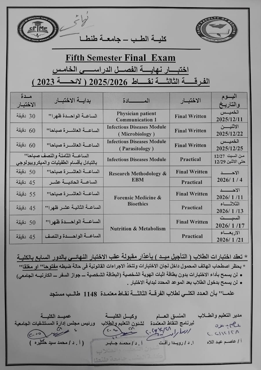 جداول امتحانات للمرحلة الجامعية لعام 2025-2026